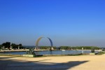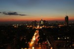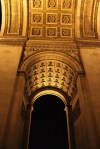 After a while, we descended to the gift shop museum level. Megan took a look around the shop for potential gift souvenirs while I examined the interesting interactive display that offered detailed information about all the great arches of Western Europe. At the bottom of the stairs, we stopped to admire the beautiful lighting under the Arc de Triomphe. I would have never thought to find beauty UNDER a grand Arch, but it was unmistakably there.