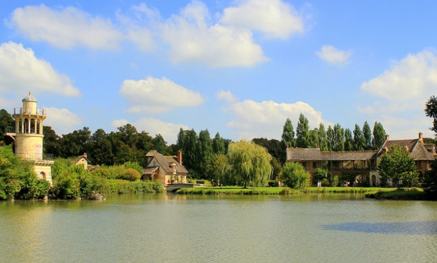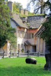 Just a short walk behind the Petit Trianon led us across a babbling brook to the sight of a whimsical-looking “village.” This village was quite picturesque, and it would not have appeared to be out of the ordinary in some bygone era- except that it had an odd tower overlooking the pond adjacent to it. The whole thing reminded me of something out of a theme park…and really, that notion is not that far from the truth! This “village” was of course the Queen’s Hamlet. Marie Antoinette had this whole area built exactly to her liking so that she could have an even better “escape” from Palace life. The Queen would spend many days here with her friends putting on plays and playing at “peasant life.” However, even though this hamlet was purely contrived, it did serve some purpose other than a hideaway. There was a working farm on the property that actually supplied produce to the Versailles kitchens. This area of the estate was the best part of the whole visit to Versailles- hands down.