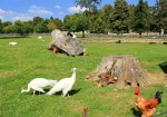 The hamlet, with its houses, gardens, and thatched roofs really did seem to be like something out of a storybook. It was enchanting. We walked along the lake and admired the little village until we reached the farm. I had not expected to see such a menagerie of animals there! Rabbits and Roosters, Peacocks and Pigs, Chickens and Goats and even Guinea Fowl all lived together in harmony on that farm. For some reason, we couldn’t stop laughing at it all- we loved it! (Though perhaps we were finally beginning to go crazy from all of our nonstop adventuring…)