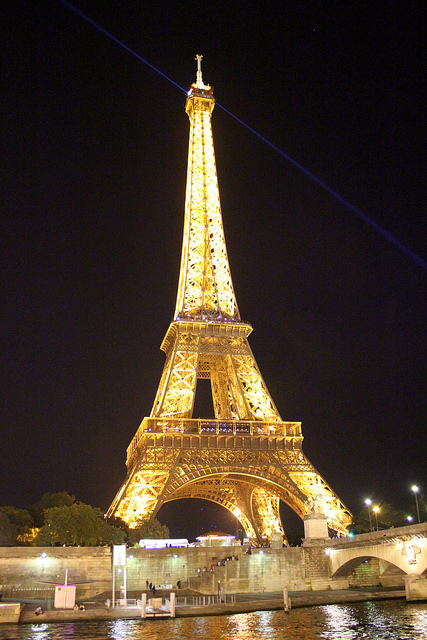 The river cruise was great! The route took us around the Ile Saint-Louis, all the way upriver to the Pont de Grenelle or thereabouts, and then back to dock by the Pont de l’Alma. Along the way, we saw all the great monuments, museums, cathedrals, and bridges within view of the river- the Musee d’Orsay with it’s grand lighted clock, our first look at beautiful and iconic Notre Dame, and many of Paris’ famous (and infamous) bridges such as Pont Neuf and Pont des Arts with thousands of love-locks. We saw lovers and friends enjoy the camaraderie (and wine!) along the quays of the Ile Saint-Louis and Ile de la Cite. There were mass dance lessons on the Rive Gauche and impromptu jazz bands wailing into the night along the Rive Droit. But the impression that will stay with me the longest was the view from the river of the Eiffel Tower, bathed in a beautiful light that made it appear to be made of solid gold. It could have been for all we knew. “Magical” was the right word.