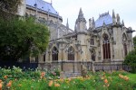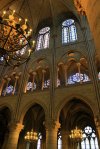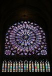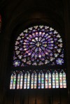 The inside of the cathedral was cavernous- and crowded. We made our way along the alcoves with the tourist masses. There was a very interesting historical exhibit near the very back of the cathedral that showed the construction progress of Notre Dame through the centuries. I did not realize that it was built in many different stages- the first stage was started in 1163 and completed in 1182, with the final stage not being fully completed until 1345. Perhaps the most impressive features of Notre Dame are the massive stained glass windows that can be found high above the viewer on both sides of the cathedral. Perhaps they would have been even more impressive had I not just viewed the stained glass of the Sainte-Chapelle, but they were still incredibly beautiful in their own right.