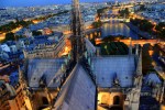 We hurried back towards Notre Dame. We were there only a few hours earlier, but that now seemed like a few days to our tired feet. We found the line for the entrance to the Notre Dame towers on the north side of the building. We waited for 15 agonizing minutes as we realized we were probably too late for the sunset. However, we were not going to be deterred by a little wait. When it was our turn, we first climbed about 75 stairs or so to the ticket office/gift shop. They let everyone up in groups, so we had to wait another 5 minutes or so for everyone to get tickets (we only needed our trusty museum passes). Once we were allowed through, we began the dizzying climb up 200+ more steps to reach the tower belfry level. As we stepped out onto the belfry overlook, we caught the final glimpses of the daylight. The view of Paris in this light was breathtaking. As the clock struck 9, the Eiffel Tower’s dazzling hourly light display began in brilliant fashion. The lights of the city cast a golden glow on the streets below while off to the north, the spotlights reflected off of the white stones of the Sacre-Coeur. Paris was really in fine form that night. We inched our way around the belfry overlook to the south tower stairs where we climbed even higher along an ever-narrowing staircase. The unhindered view from the very top was even better than the belfry overlook. I could have stayed up there all night, but we had dinner plans to make. It was a long way down the 387 steps to the bottom, but we finally made it.