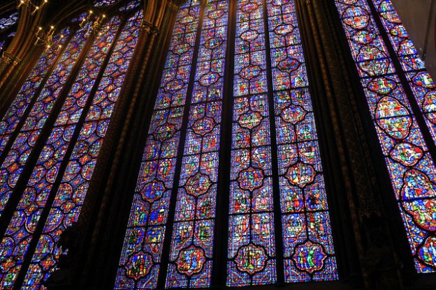 After learning the history of the chapel- it was built to house all of the holy relics acquired by Louis IX- we ascended the winding stone staircase up to the main level of the chapel. We were completely unprepared for the beauty that awaited us there. Mouths agape, we were stunned to see the morning light streaming through the most impressive stained-glass display we had ever seen. The intricate pieces of glass refracted a glowing colorful light that seemed to be impossibly perfect. Even with two of the seven main window groups under renovation, the overall effect was not diminished in the slightest. It was truly awe-inspiring and a sight that could not possibly be replicated.