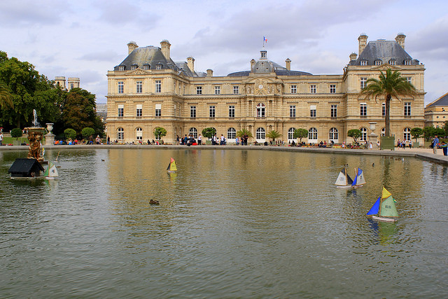 Boats glide across the main fountain pool