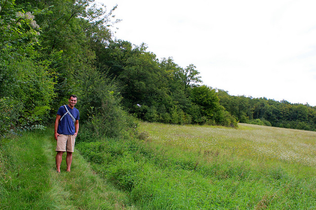 At the trailhead to the Allée Couvert dolmen