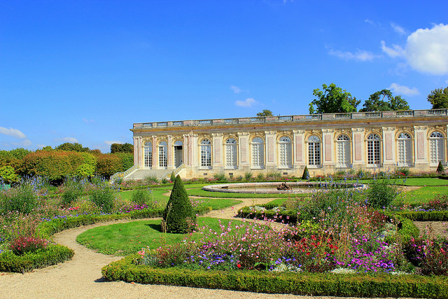 A wing of the Grand Trianon frames the garden courtyard nicely
